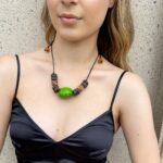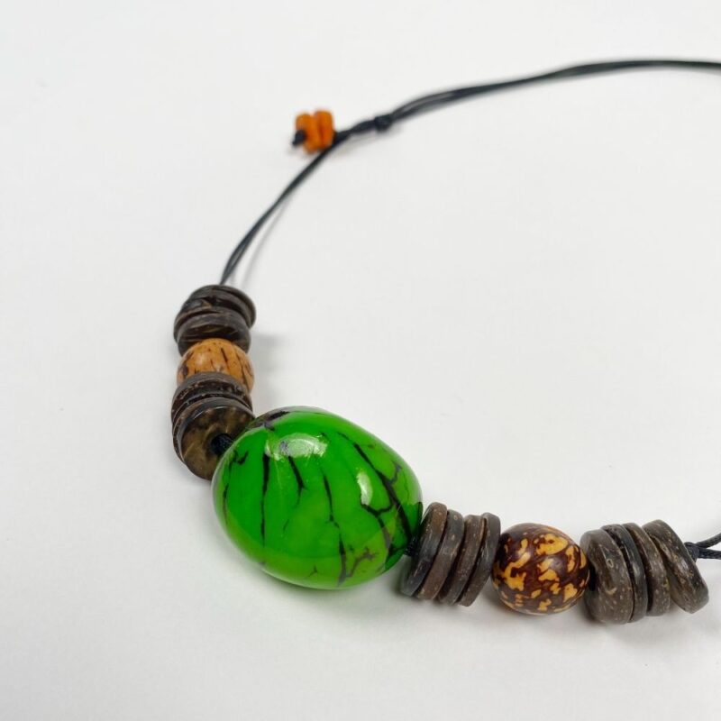 Colar Semente Jarina (marfim vegetal) Verde Escuro com Anéis de Casca de Coco