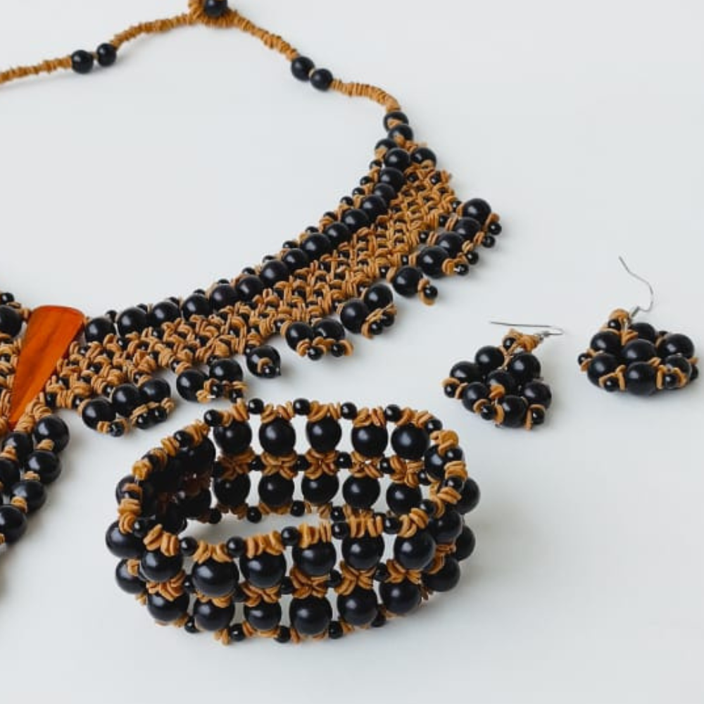 Kit Colar, Pulseira e Brinco,  produzido por artesãos da do Estado do Amazônas. Feito em Sementes de Morototó e Açaí. Seu nome remete às noites escuras e deslumbrante da Amazônia. Um produto que nos conecta com a natureza, traz elegância em seu design e reafirma nosso compromisso com a sustentabilidade.